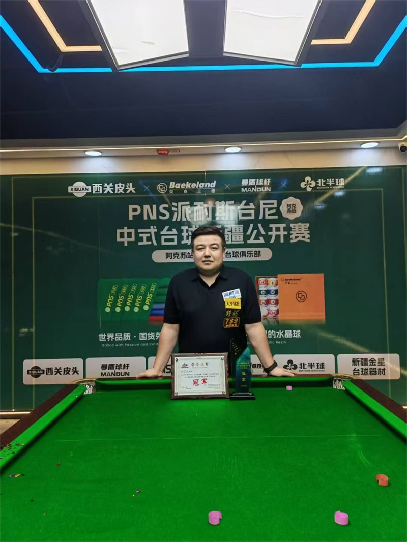 热烈庆祝野豹·大亨铭仕签约球手买尔旦夺得阿克苏站耐斯台尼中式台球新疆公开赛冠军
