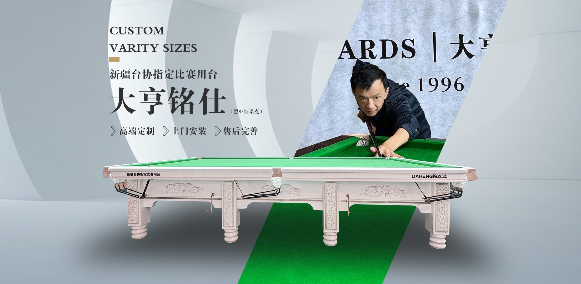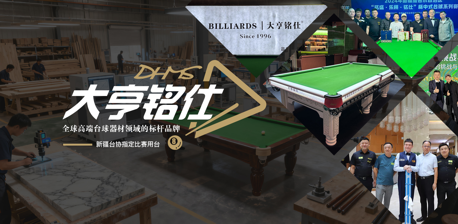 大亨铭仕自1996年创立以来,始终致力于为全球台球爱好者提供专业、高品质的器材与服务。我们集研发、生产、销售于一体,产品线覆盖专业比赛级球桌、精准耐用的球杆、及各类配套精品配件。我们专注于高端台球器材的研发与制造,其核心产品——专业级比赛球桌与手工精选球杆,以无可挑剔的平整度、卓越的库边回弹性和精准的击球手感而闻名于世。....
